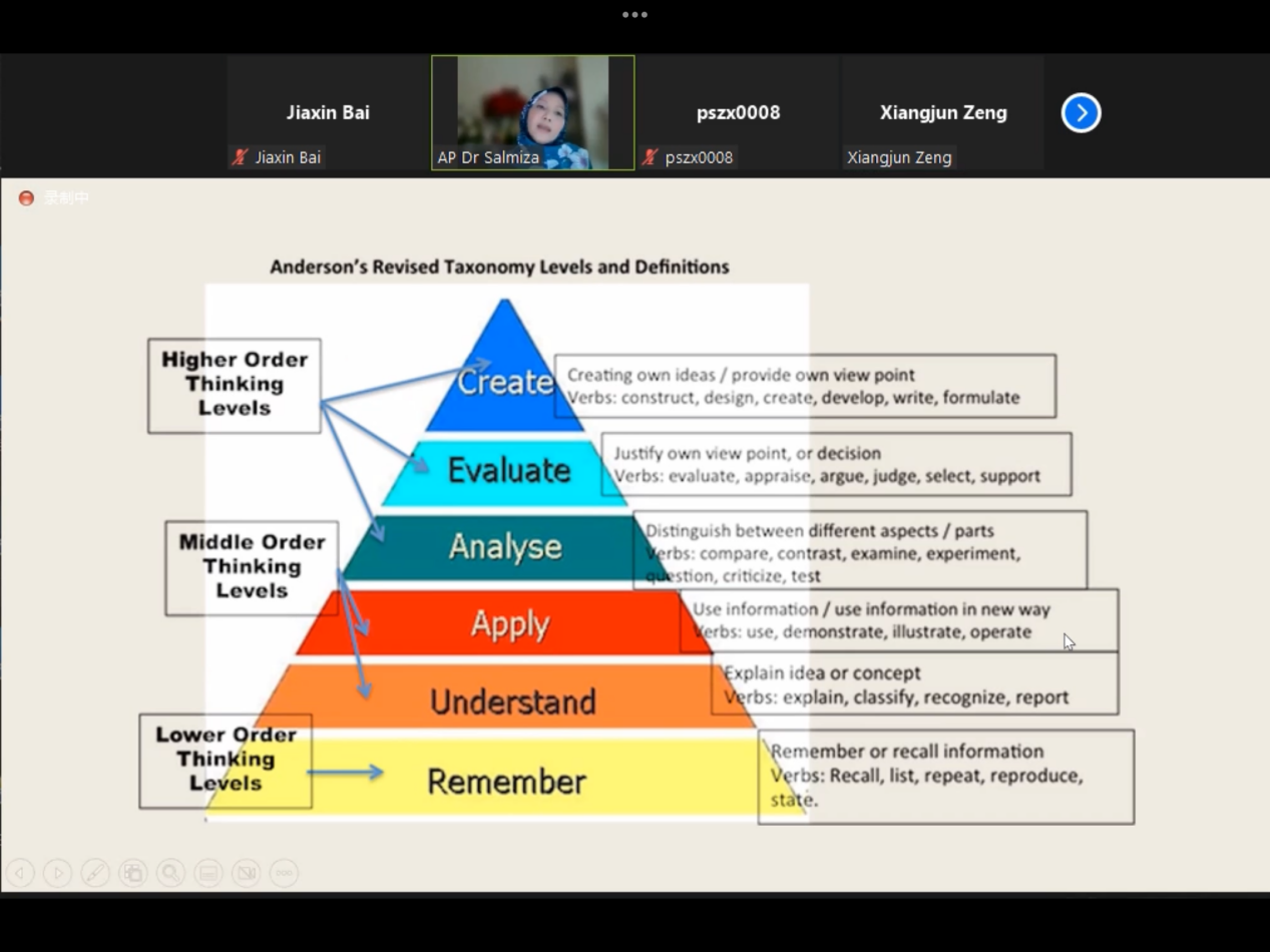 第一部分,Salmiza Saleh认为高阶思维技能是一种适应不断变化的、多维的、兼容的、独立的思维模式。高阶思维包含评价、综合、分析、应用及领悟,低阶思维则为知识。Anderson改进的等级水平定义中,创造、评价和分析属于高阶思维水平;应用、理解属于中阶思维水平,而记忆属于低阶思维水平。在进行STEM教育的四个步骤中,Salmiza Saleh强调要培养学生的分析、评价和创造的能力,这些高阶思维技能可以提高学生多任务处理的能力,对于提高学生领导力和自信心,加强学生以解决方案为导向的能力具有重要作用。