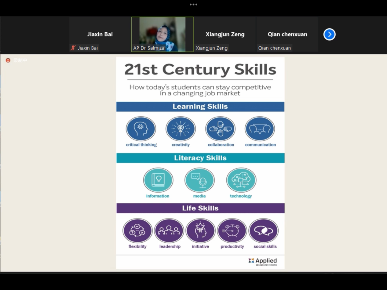 第三部分,Salmiza Saleh阐释了“21世纪学习技能”。“21世纪学习技能”这个术语涉及知识、技能、工作习惯、性格特征等,对于大学课程、当代职业和工作场所都是至关重要的。STEM教育的进行有助于培养学生的21世纪学习技能,即学习和创新技能(包括批判性思维、创造力、协作、沟通等能力)、信息、媒体和技术技能以及生活和职业技能。指出STEM教育能促进高阶思维技能、科学过程技能以及21世纪学习技能的发展,而高阶思维技能和科学过程技能对21世纪学习技能也起着至关重要的作用。