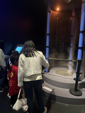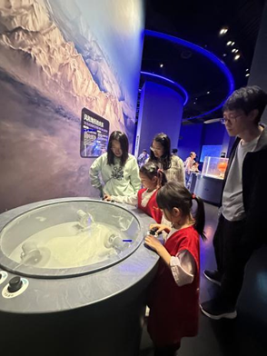 “无论是在学校还是在社会,都要把学习同思考、观察同思考、实践同思考联系起来”习近平总书记如是说。社会教育与学校教育同作为科学教育并驾齐驱的形式,同样需要学生在社会科学学习中不断学习、观察与实践。“要转变对科学教育资源的认识,不仅仅停留在教材、书本之上。科技馆场教育是重要的非正式科学场所,要充分发挥‘社会大课堂’在科学教育中的作用”科学教育研究中心主任黄晓在组织五四青年行活动时,与同行的青年师生们谈到。科技馆中基础的科学概念与前沿的科学话题相结合,构建了一套可视化、可触及、可体验的科学知识“教科书”。