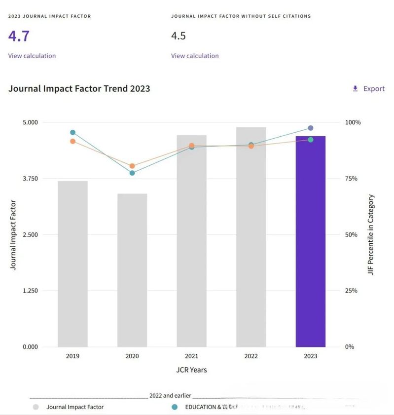 作为科学教育领域历史最久、声望最高的综述旗舰期刊,《Studies in Science Education》以 “整合 — 反思 — 引领” 的独特价值,支撑学科体系化发展。它为全球科学教育搭建了知识沉淀、学术对话、范式建构的核心平台,让分散研究形成合力、让经验成果升华为理论、让区域实践拓展为国际共识。近年来期刊影响力持续攀升,稳居国际教育领域 Q1 与中科院 1 区 Top,成为科学教育硕博培养、学术研究、课程改革与政策制定的必读参考文献。在全球化、数字化与教育公平的时代浪潮中,该刊持续以高质量综述凝聚智慧、引领方向,为科学教育的高质量发展提供不可替代的学术支撑。